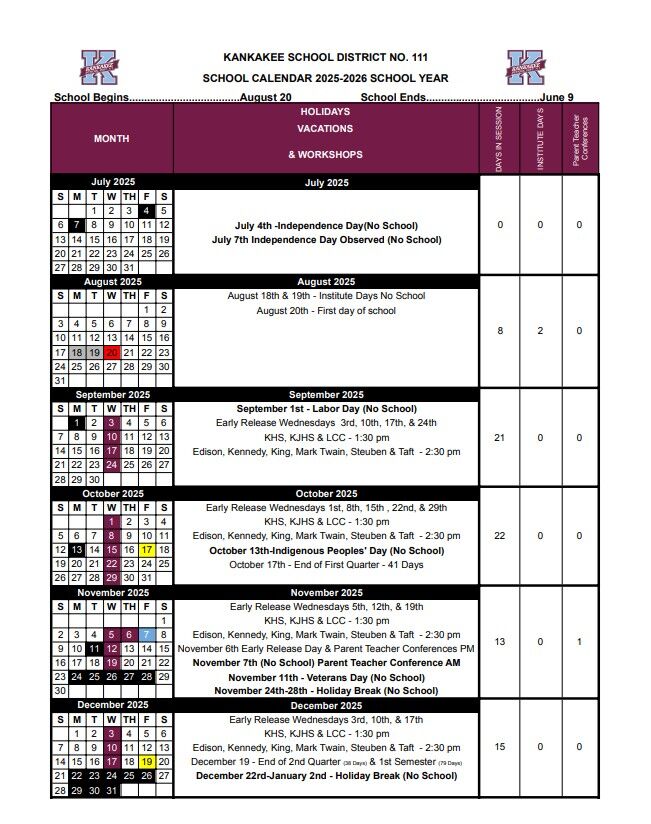 Important Schedule Update Due to the StormDue to the recent storm, June 8th and June 9th will both be early release days. English:Spanish:Please note the early release times:KHS, KJHS, and LCC: 1:3...