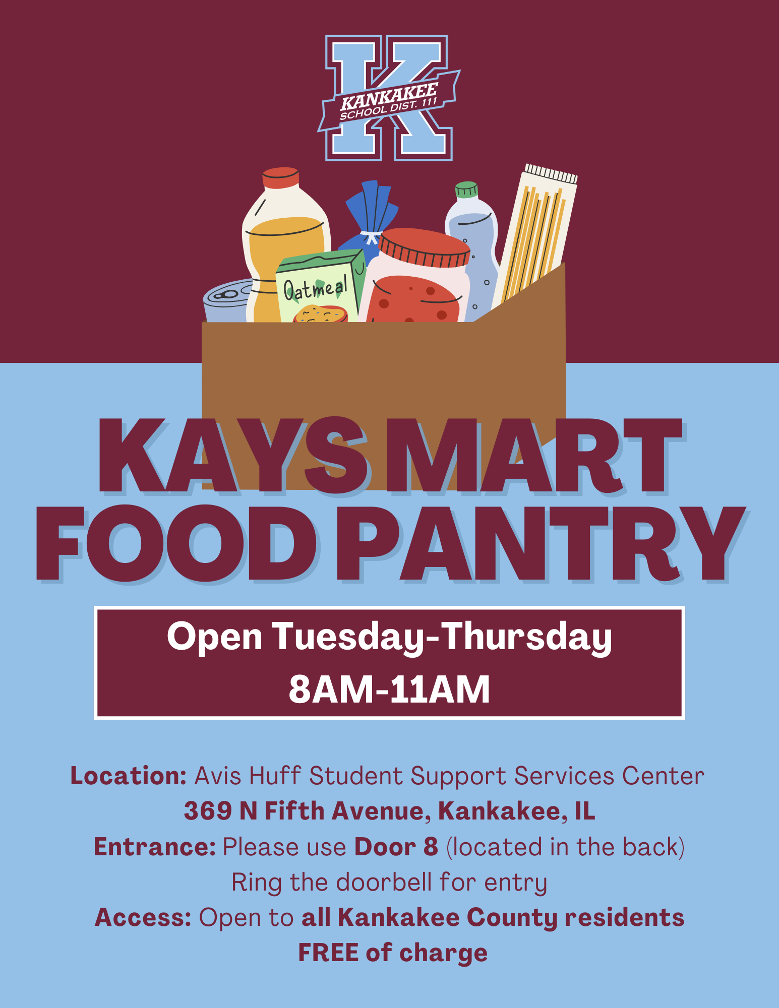 We’re glad to share that the KaysMart Food Pantry will reopen on Wednesday, March 25th. Regular hours will resume: Tuesday–Thursday, 8:00 AM – 11:00 AM Avis Huff Student Support Services Center 369...